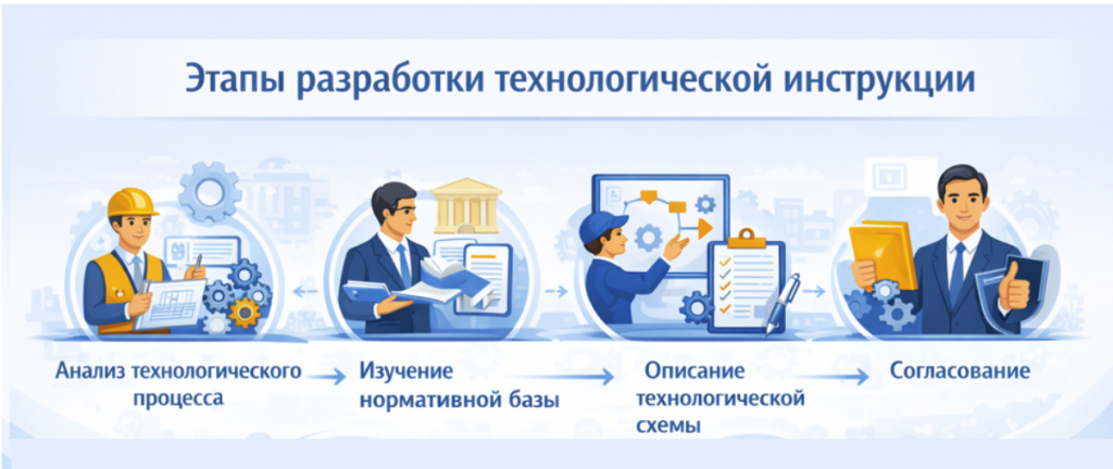 Подготовка технологической инструкции требует системного подхода и учета особенностей конкретного предприятия. Обычно процесс разработки в центре «Гостзапрос» включает несколько этапов.