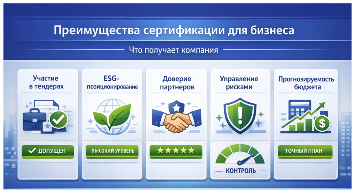Сертификация по ГОСТ Р ИСО 20121-2014 — это инвестиция в устойчивость бизнеса и конкурентные преимущества.