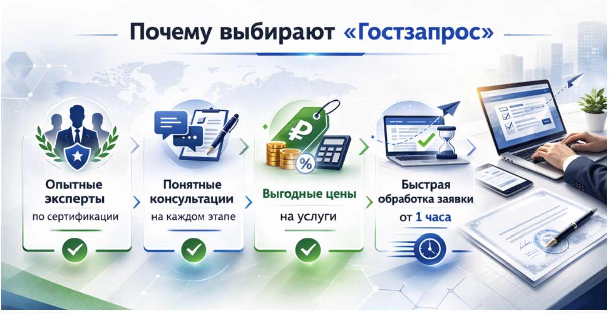 Центр «Гостзапрос» внедряет стандарт и сопровождает сертификацию на всех этапах — от предварительной оценки до регистрации документов в реестре.