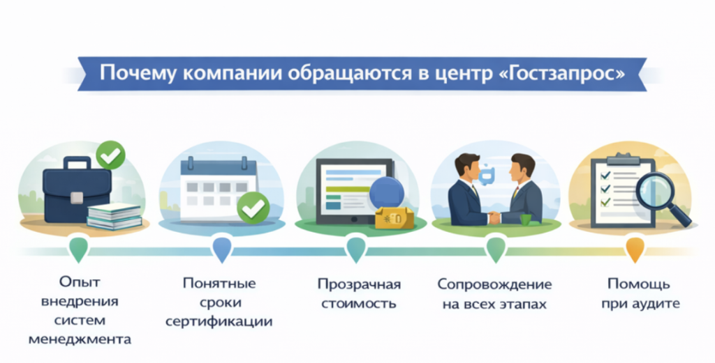Центр «Гостзапрос» сопровождает клиента на всех этапах подготовки и сертификации.